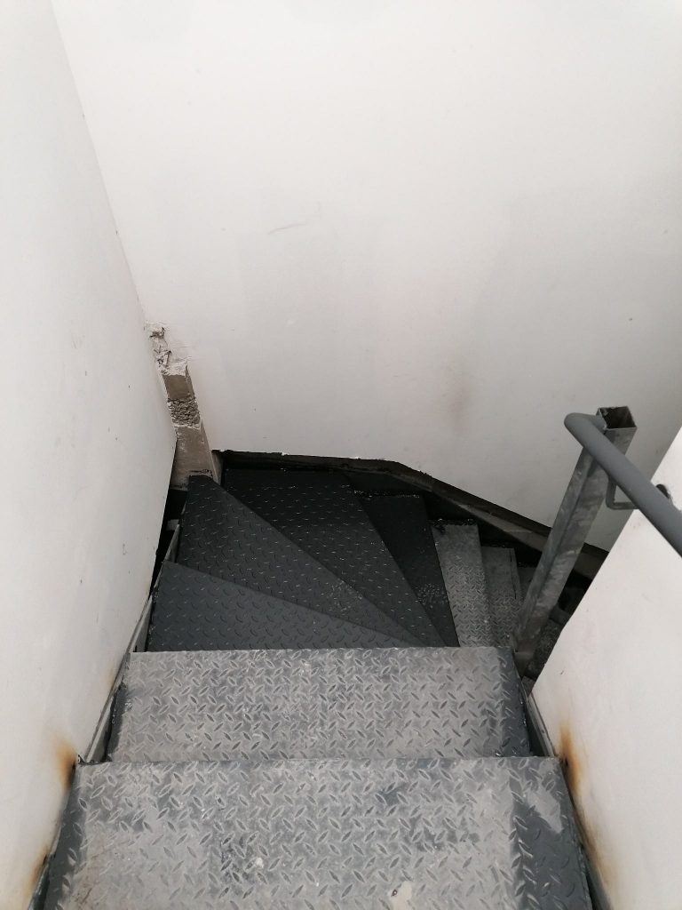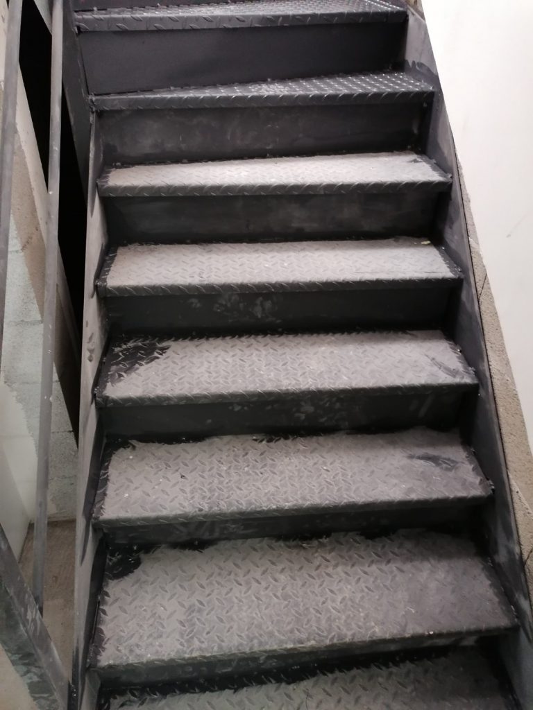 Fabrication assemblage et pose d’un escalier en acier à tôle larmée un quart tournant avec garde-corps et main courante en acier