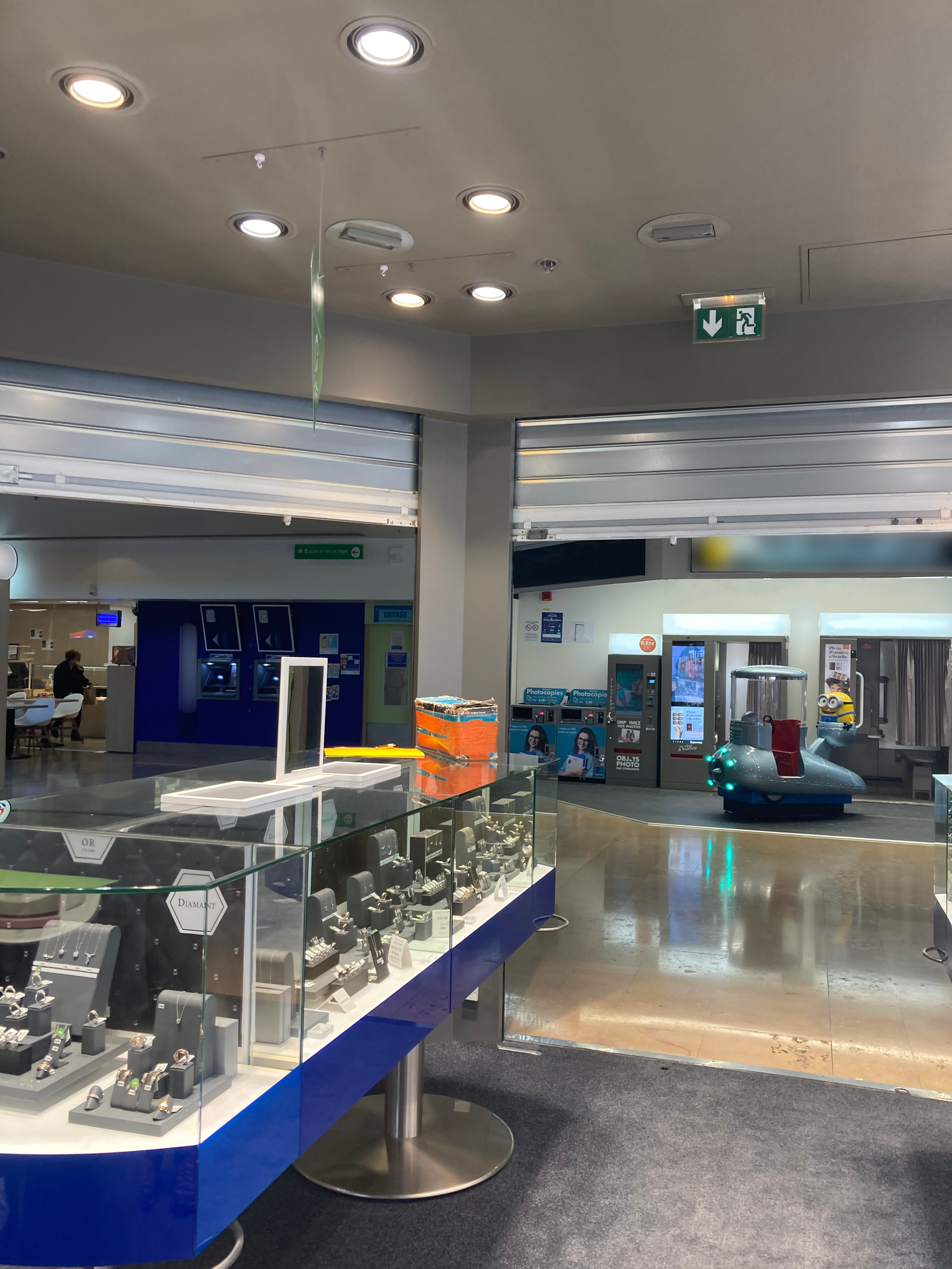 Mise en place d’un périmètre de sécurité pendant les travaux en horaires d’ouvertureMise en peinture des piliersMise en peinture des piliers et du bandeau intérieurMise en peinture des piliers et du bandeau extérieurPeinture des piliers et du bandeau intérieur terminéPeinture des piliers et du bandeau extérieur terminéPose et alimentation des enseignes