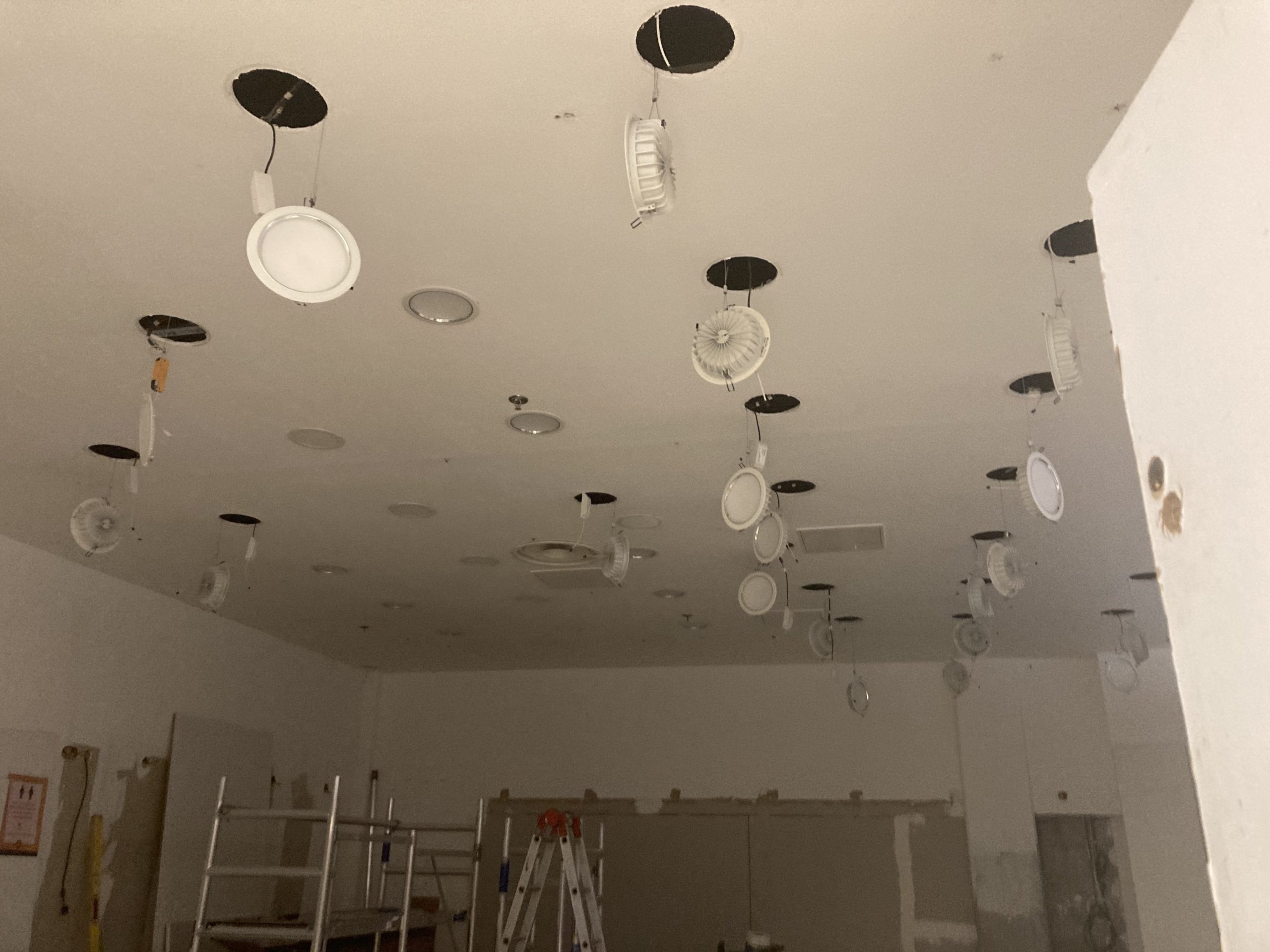 - Dépose des spots avant peinture au plafond